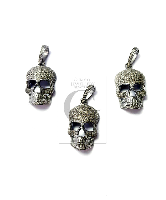 Latest skull design Rosecut pave diamond pendant 925 sterling silver handmade finish beautiful diamond pendant jewelry