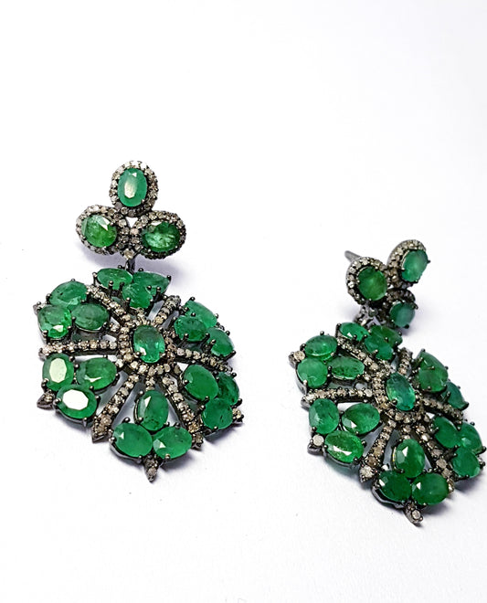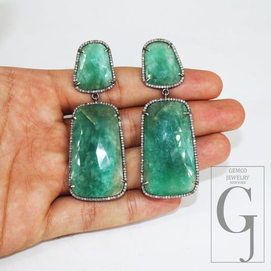 Natural emerald Pave diamond earring 925 sterling silver handmade Pave diamond earring zambian emerald stone jewelry wedding jewelry