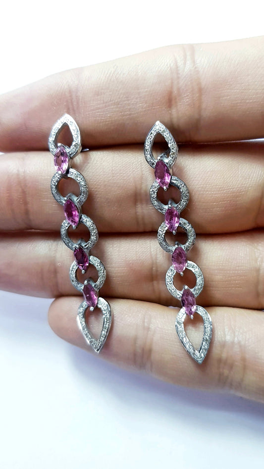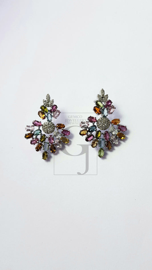 Natural multi colored tourmaline stone with rosecut diamond pave setting diamond earring designer one of a kind unique design earring