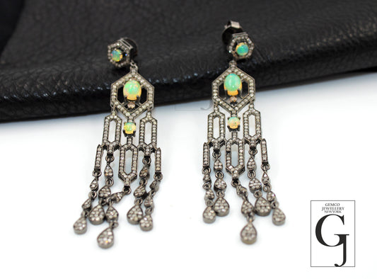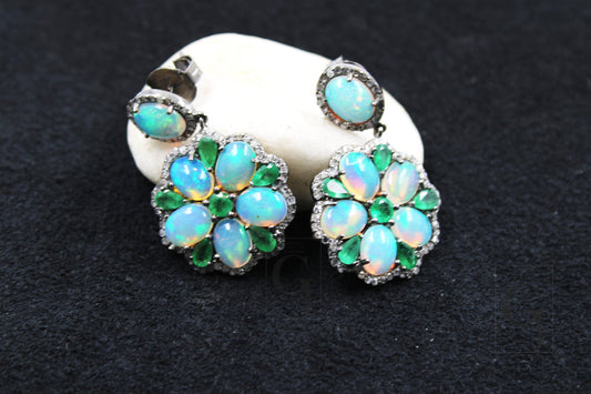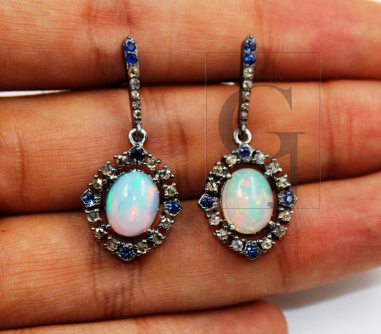 Natural opal earring designer earring Rosecut pave diamond earrings 925 sterling silver handmade silver finish diamond earring