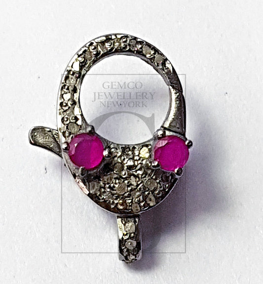 Natural Genuine Sapphire,Emerald,Ruby Both Side Color Stone Clasp Pave Rosecut Diamond 925 Sterling Silver Handmade Clasp Accessory
