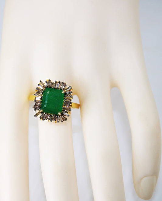 Natural Octogen Cut Emerald Diamond Ring Rosecut Pave Diamond Rings 925 Sterling Silver Handmade Silver Finish Baguette Diamond Ring Jewelry