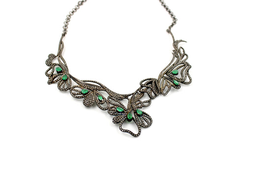 One of a kind emerald designer necklace Rosecut pave diamond necklace 925 sterling silver handmade finish diamond necklaces