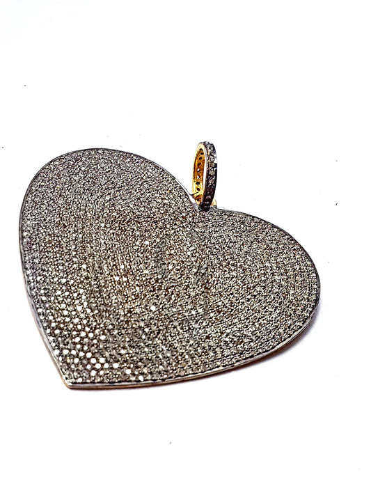One of a kind gift heart shape love design pave diamond pendant, Pave diamond rosecut 925 sterling silver , handmade diamond heart pendant