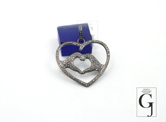 One of a Kind Heart Designer Pendant Rosecut Pave Diamond Pendant 925 Sterling Silver Handmade Finish Diamond Jewelry Necklace Pendant