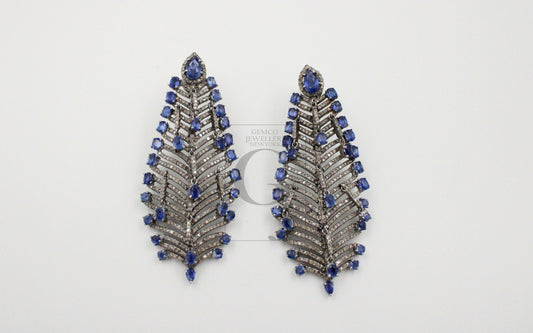 One of a kind kaynite oxidized designer earring Rosecut pave diamond earrings 925 sterling silver handmade silver finish diamond earrings