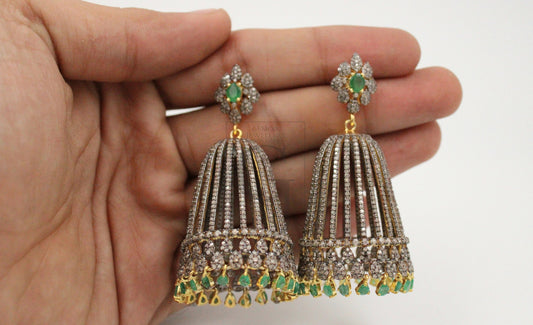 One Of A Kind Designer Emerald Gold Earring Rosecut Pave Diamond Earrings 925 Sterling Silver Handmade Silver Finish Diamond Earrings