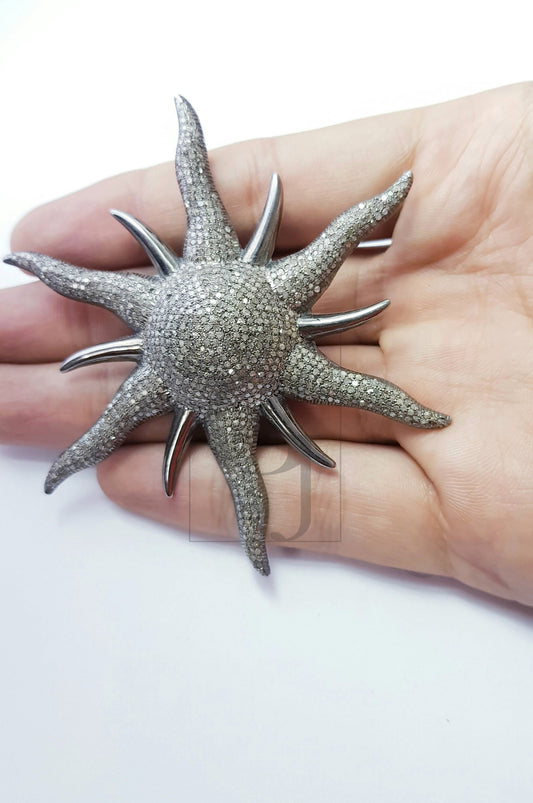 One of a kind designer full Rosecut pave diamond pendant 925 sterling silver handmade finish diamond sunburst jewelry pendant