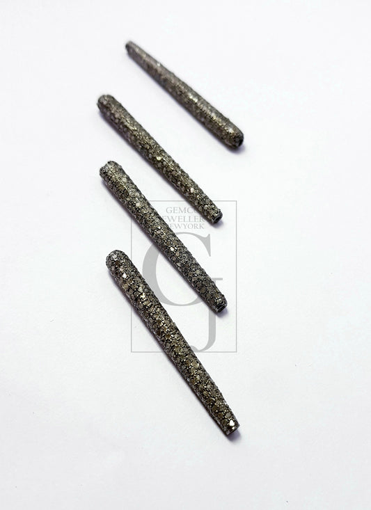 One Of a Kind Designer Rosecut Pave Diamond Bead 925 Sterling Silver Handmade Silver Finish Diamond Bead Long Bead Drop Bead