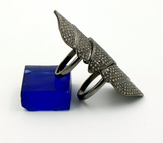 One of a kind Oxidized finish designer Rosecut pave diamond rings 925 sterling silver handmade silver finish diamond ring