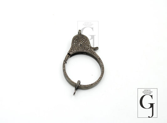 One of a kind Rare Huge size Antique look Rosecut pave diamond spring clasp 925 sterling silver handmade diamond lobster clasp