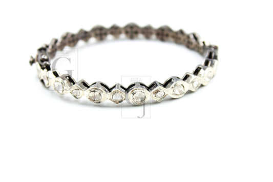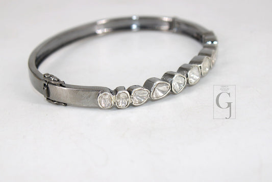 One of a kind polki flat diamond bangle Rosecut pave diamond bangle bracelet 925 sterling silver handmade finish diamond bangle bracelet