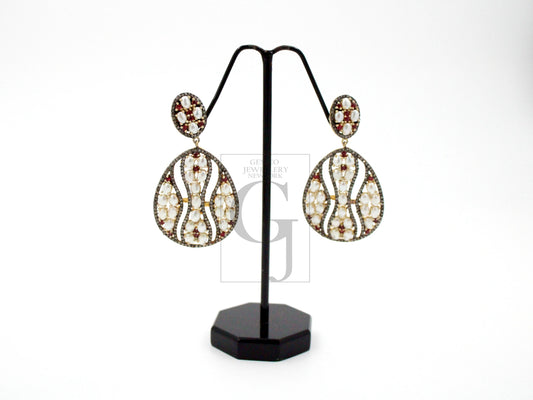 One of a kind pearl designer beautiful earring Rosecut pave diamond earrings 925 sterling silver handmade silver finish diamond earrings