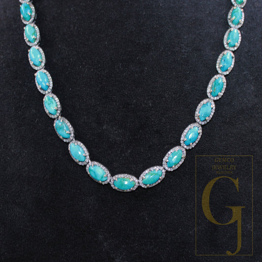 One Of a Kind Natural Turquoise Diamond Necklace Rosecut Pave Diamond Jewelry Sterling Silver Handmade Jewelry Adjustable Necklace Pendant