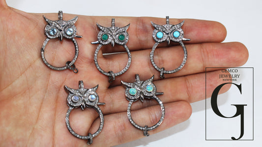 Owl Designer Clasp Rosecut Pave Diamond Screw Design Spring Clasps 925 Sterling Silver Handmade Finish Diamond/Sapphire/Ruby/Emerald ClaspsRegular price $51.94 USDRegular priceUnit price per$106.00 USDSale price $51.94 USDSale
