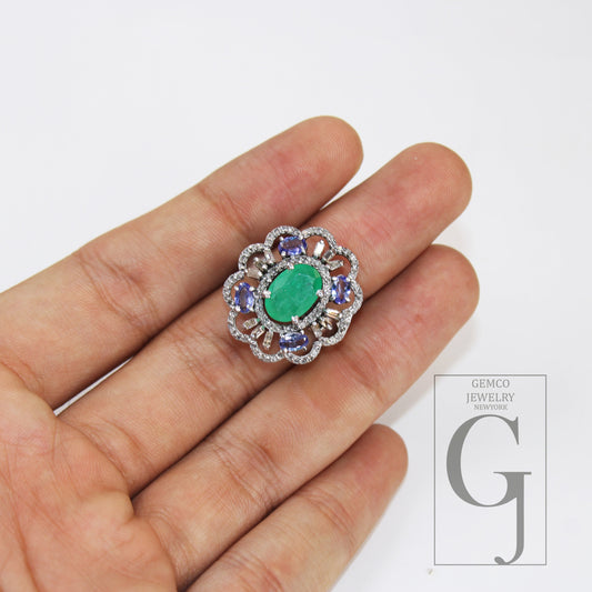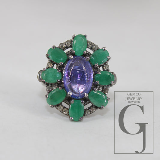 Oxidized finish look tanzanite emerald ring designer Rosecut pave diamond rings 925 sterling silver handmade silver finish diamond ringRegular price $131.32 USDRegular priceUnit price per$268.00 USDSale price $131.32 USDSale