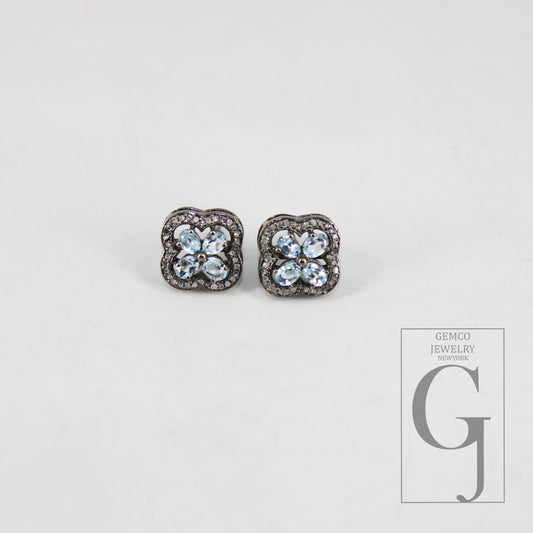 Oxidized Finish Blue Topaz Studs Flower Designer Earring Studs Pave Rosecut Diamond 925 Sterling Silver Handmade Diamond Pave Stud EarringsRegular price $57.82 USDRegular priceUnit price per$118.00 USDSale price $57.82 USDSale