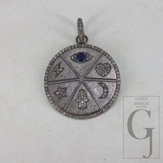 Oxidized finish designer symbols pendant Rosecut pave diamond pendant 925 sterling silver handmade finish diamond charms necklace pendantRegular price $74.48 USDRegular priceUnit price per$152.00 USDSale price $74.48 USDSale