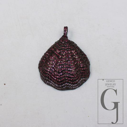 Oxidize Seashell Designer Full Pave Ruby Pendant 925 Sterling Silver Handmade Finish Natural Red Ruby Charms Necklace Pendant JewelryRegular price $183.75 USDRegular priceUnit price per$375.00 USDSale price $183.75 USDSale