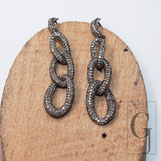 Oxidized Finish Link Earring Designer Earring Rosecut Pave Diamond Earrings Sterling Silver Handmade Silver Finish Diamond Earring JewelryRegular price $455.70 USDRegular priceUnit price per$930.00 USDSale price $455.70 USDSale