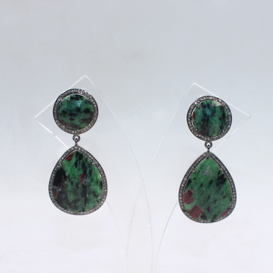 Natural Ruby Zoisite With Diamond Drop Earrings – 925 Sterling Silver Handmade Finish Luxury Jewelry Gift For Her