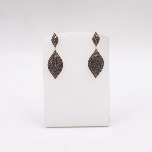 Natural Rosecut Diamond Drop Earrings – Vintage Gold-Plated 925 Sterling Silver Dangle Jewelry For Women