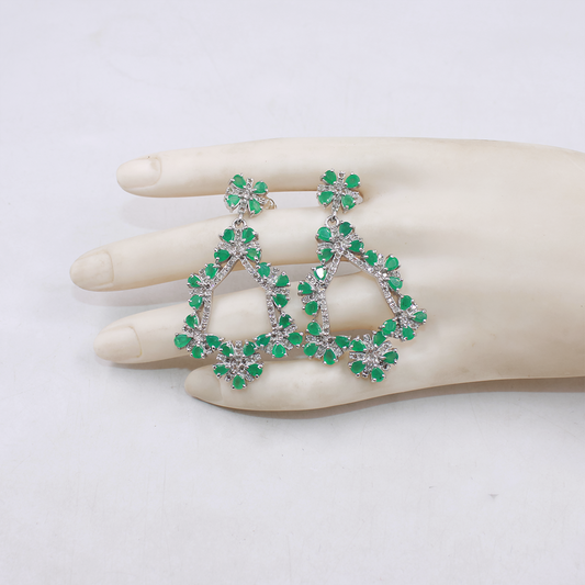 Natural Emerald & Rosecut Diamond Earrings – Handmade 925 Sterling Silver Statement Jewelry