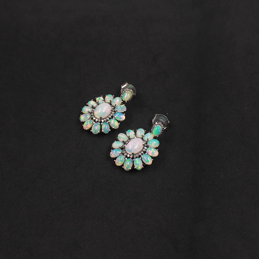 Natural Ethiopian Opal Earrings With Pave Diamonds – 925 Sterling Silver Vintage Drop Jewelry
