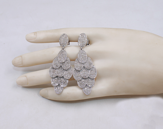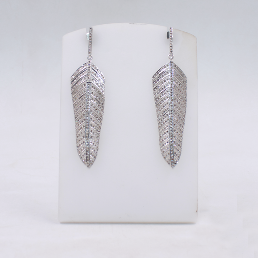 Natural Pave Diamond Feather Earrings In 925 Sterling Silver – Elegant Pave Drop Jewelry For Weddings & Luxury Gifts