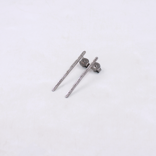 Natural Rosecut Pave Diamond Bar Earrings In 925 Sterling Silver – Modern Handmade Jewelry for Weddings & Special Occasions