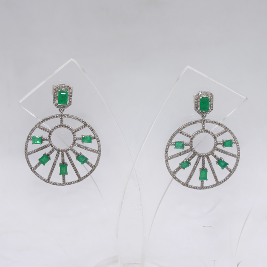 Natural Emerald Eith Pave Diamond Earrings – 925 Sterling Silver Handmade Statement Jewelry For Special Occasions
