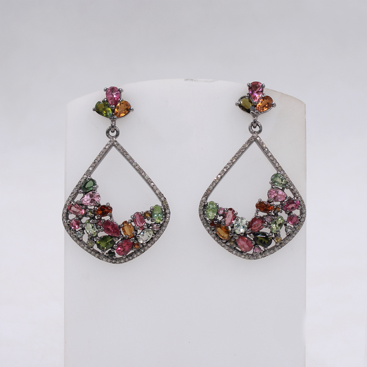 Natural Multi-Tourmaline Earrings With Pave Diamonds – Handmade 925 Sterling Silver | Handmade Jewelry For Weddings And Special Occasions
