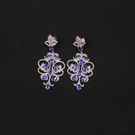 Natural Blue Tanzanite & Diamond Pave Earrings In 925 Sterling Silver – Handmade Luxury Jewelry