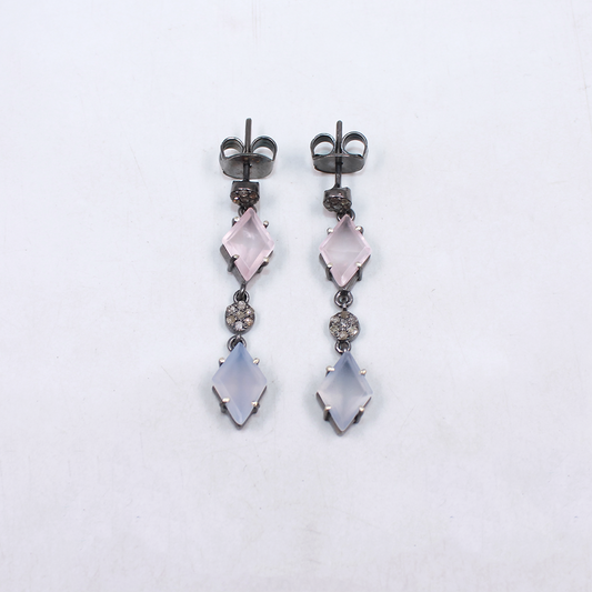 Natural Chalcedony Drop Earrings With Rosecut Diamonds – 925 Sterling Silver Earring Wedding Jewelry