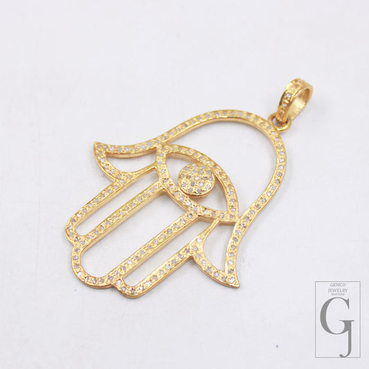 Hamsa Evil Eye Pendant with Natural Rosecut Pave Diamonds | 925 Sterling Silver, 14K Gold-Plated Talisman Charm | Handmade Spiritual Protection Jewelry
