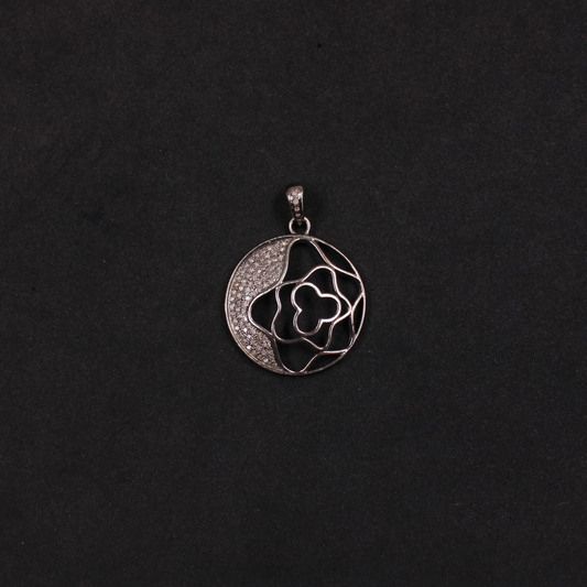 Beautiful Natural Rosecut Pave Diamond Pendant in 925 Sterling Silver | Handmade Antique-Style Luxury Jewelry for Special Occasions