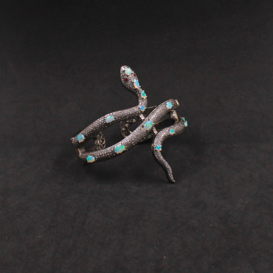 Handmade Snake Cuff Bracelet With Australian Opals, Rubies, And Pave Diamonds – 925 Sterling Silver Luxury Jewelry For Women