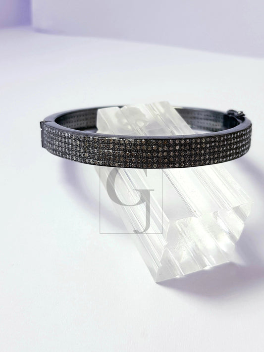 Very beautiful oxidized designer Rosecut pave diamond bangle bracelet 925 sterling silver handmade finish diamond bangle bracelet