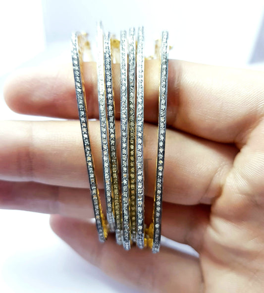 Beautiful Rosecut Pave Diamond Bangle 925 Sterling Silver Handmade Finish Diamond Bangle Bracelet