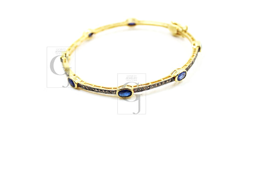 14k Gold Finish Blue Topaz Designer Bangle Rosecut Pave Diamond Bangle Bracelet 925 Sterling Silver Handmade Finish Diamond Bangle Bracelet