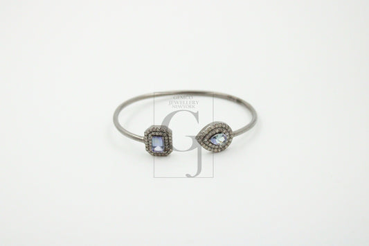Very Beautiful Designer Tanzanite Rosecut Pave Diamond Bangle Bracelet 925 Sterling Silver Handmade Finish Diamond Bangle Bracelet