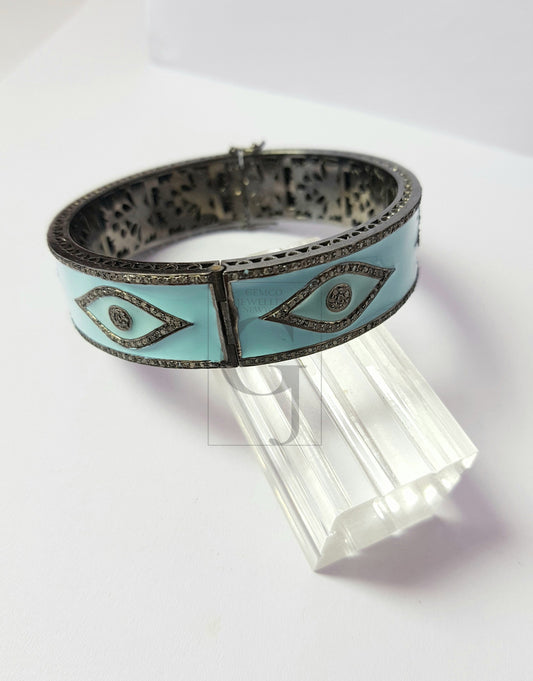 Evil eye enamel designer Rosecut pave diamond bangle bracelet 925 sterling silver handmade finish diamond bangle bracelet