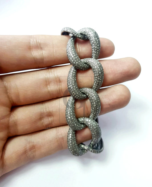 Very beautiful link chain pave diamond designer bracelet handmade Rocecut pave diamond bangle 925 sterling silver finish diamond bracelet