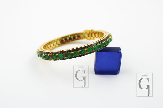 14k Gold Finish Multi Stone Bangle Rosecut Pave Diamond Bangle Bracelet 925 Sterling Silver Handmade Finish Diamond Emerald Bangle Bracelet