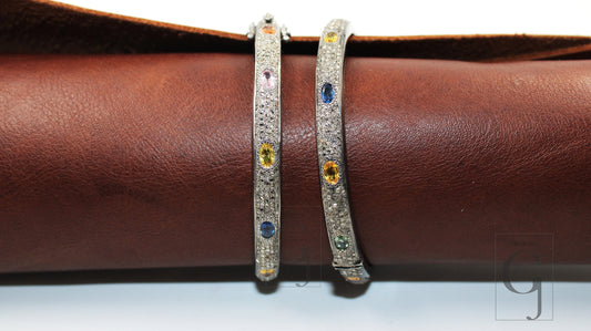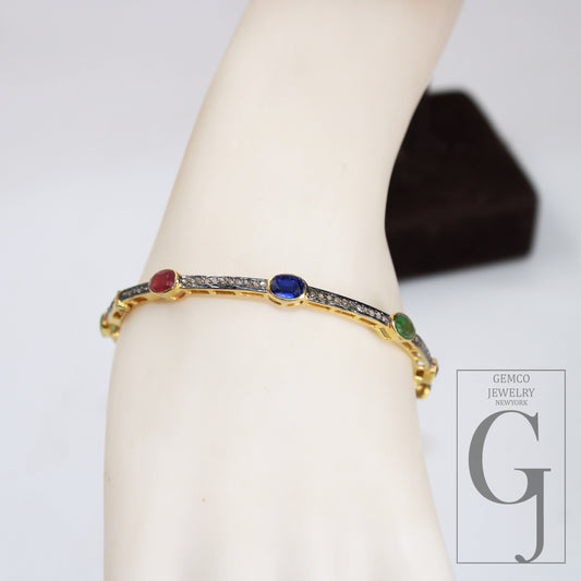 Antique Finish Multi Sapphire Rosecut Pave Diamond Bangle Bracelet 925 Sterling Silver Handmade Finish Diamond Bangle Bracelet Wrist Jewelry