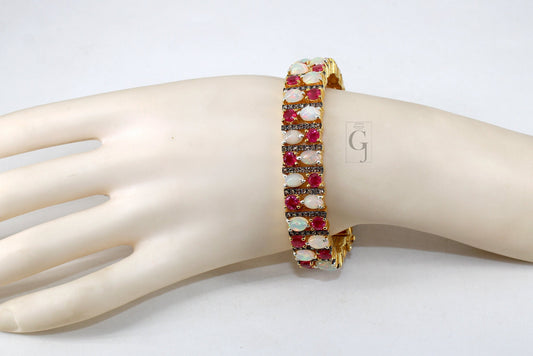 14k Gold Finish Opal And Red Ruby Bracelet Jewelry Rosecut Pave Diamond Bracelet 925 Sterling Silver Handmade Finish Diamond Bangle Bracelet