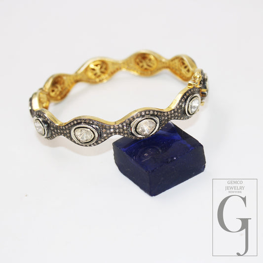 14k Gold Finish Polki Flat Diamond Bangle Rosecut Pave Diamond Bangle Bracelet 925 Sterling Silver Handmade Finish Diamond Bangle Bracelet