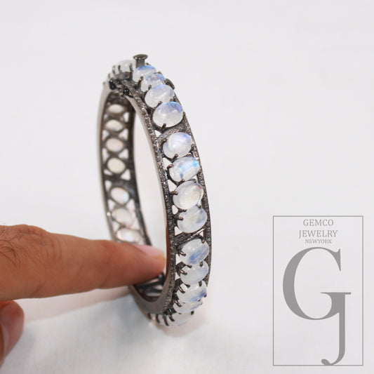 1pc Beautiful Designer Rainbow Moonstone Bangle Rosecut Pave Diamond Bangle Bracelet Sterling Silver Handmade Finish Diamond Bangle Jewelry