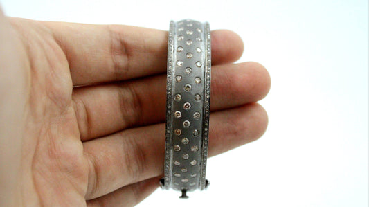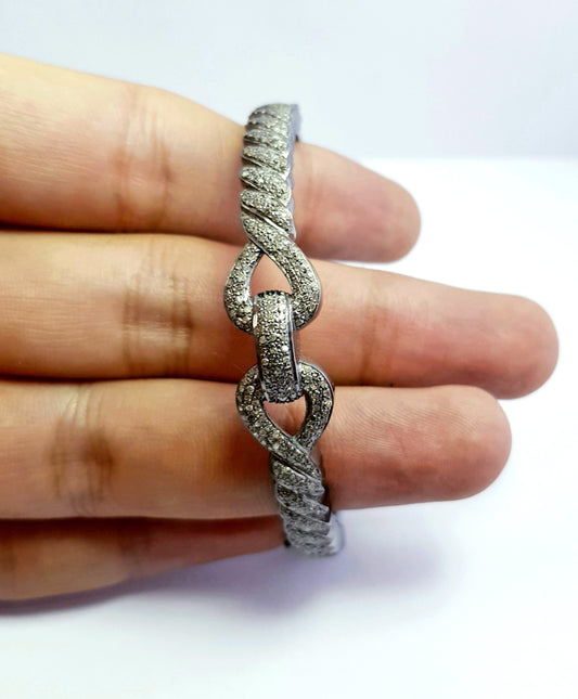 Antique Look Oxidized Designer Bracelet Bangle Rosecut Pave Diamond Bangle 925 Sterling Silver Handmade Finish Diamond Bangle Wrist Jewelry