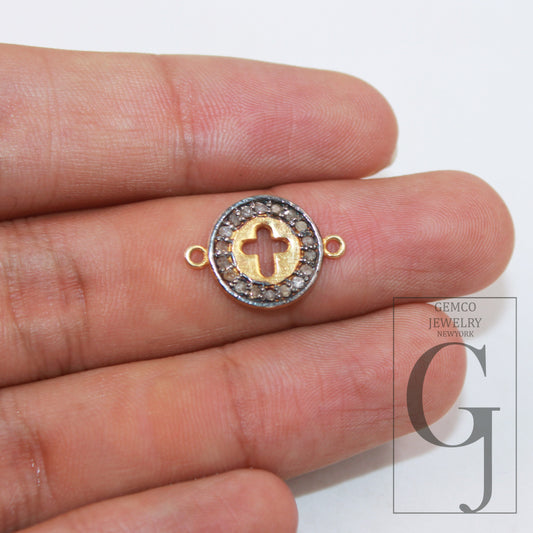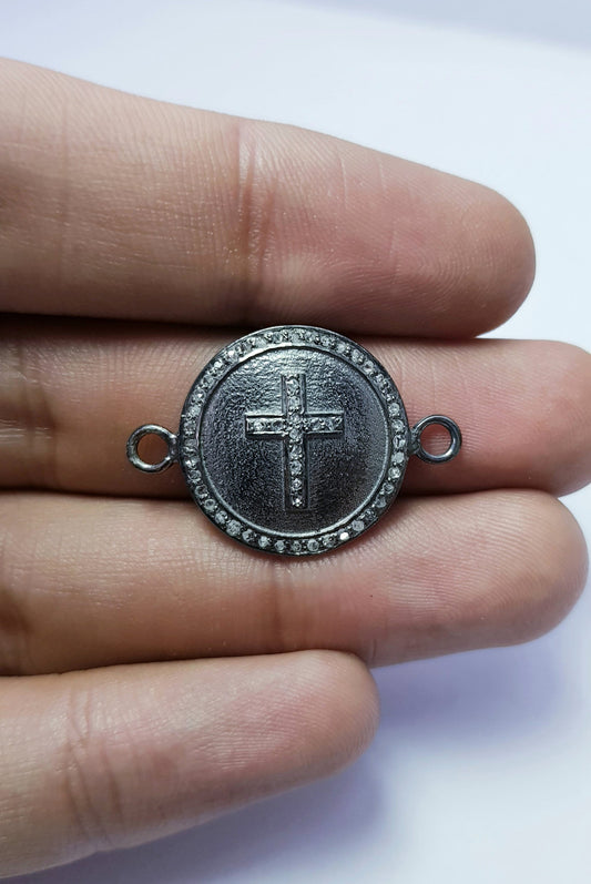 Cross Design Rosecut Pave Diamond Bracelet Connector 925 Sterling Silver Handmade Finish Beautiful Coin Shaped Diamond Connector Jewelry